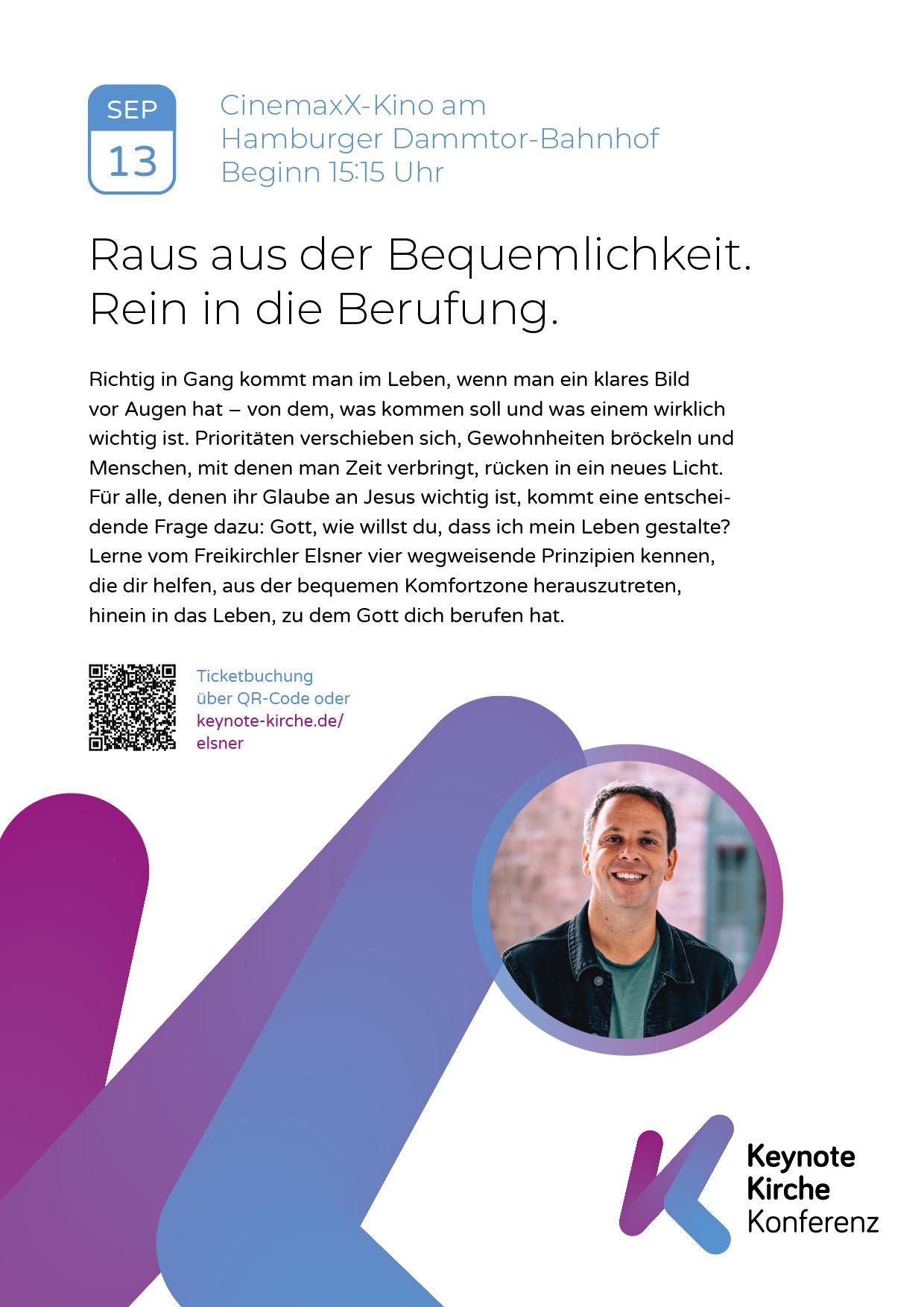 Mit der Glaubenskonferenz geht die Neuapostolische Kirche neue Wege. Zwölf Stunden Impulse und Musik erwarten das Publikum im Hamburger Kino! Speakerinnen und Speaker aus verschiedenen Lebensbereichen und mit unterschiedlichen Glaubenshintergründen laden dazu ein, sich mit Glauben und dem Leben als Christ zu befassen. Ein bunter Mix von Menschen und Themen, der dem Motto der Keynote Kirche gerecht wird: Inspirierend. Verbindend. Ökumenisch.